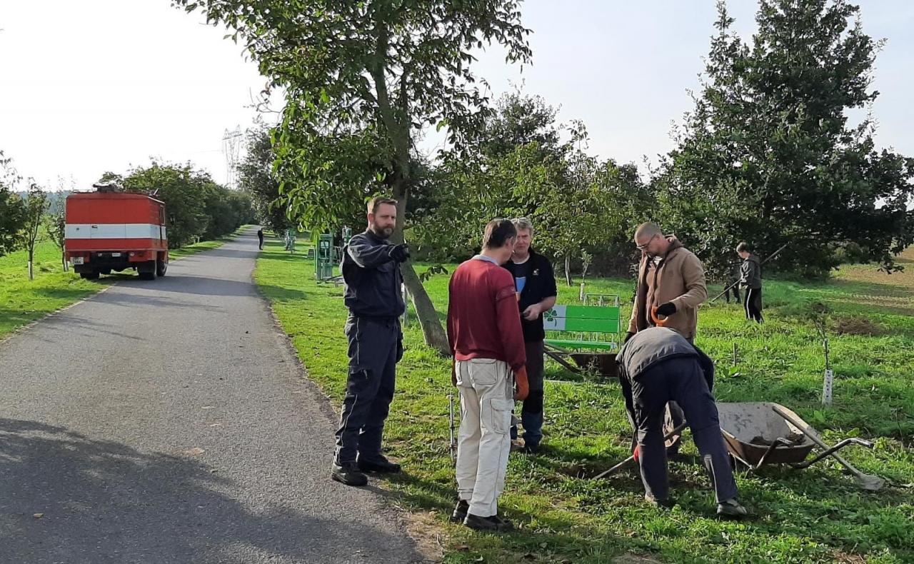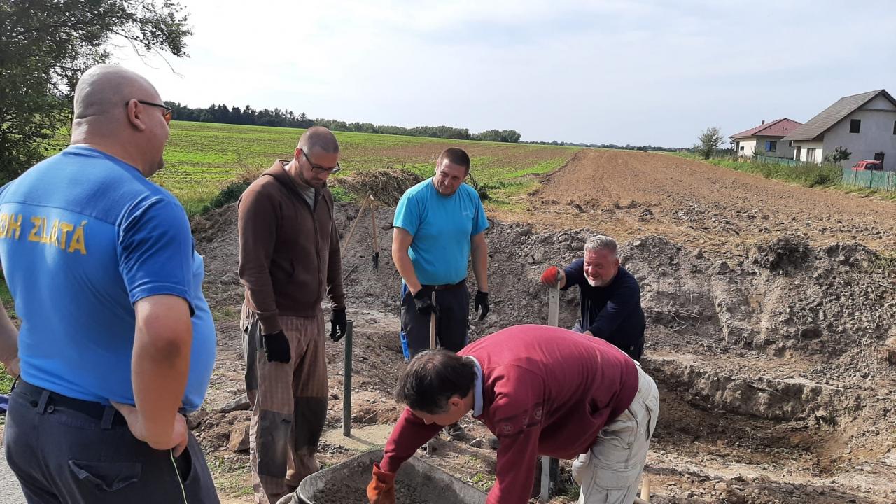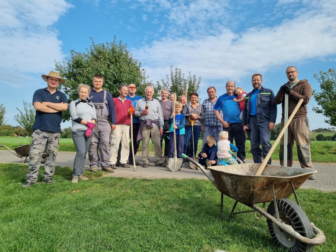 Podařilo se do 18ti výkopů uložit armovací a kotevní konstrukce do kubíku betonu, což bylo cirka 2400kg, které nám prošly rukama. Vykopali jsme před tím více než kubík kamení, hlíny, kořenů a suti, což je další tuna, kterou bylo potřeba převést jinam....klobouk dolů i před holkami, které pohrabaly tak půl hektaru trávy a ještě stihly upéct každému buřta. Děkujeme všem pomocníkům, kteří uklidili obec, autobusové zastávky nebo okolí svých domů, a děkujeme také našim dvěma malým malířům. Jejich barevné kostky budou základem hry pro všechny děti v obci.