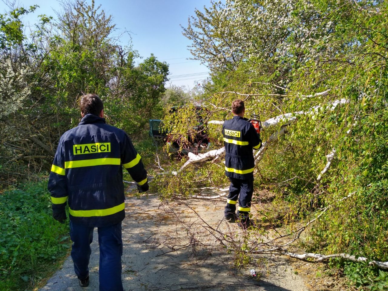 Hasiči zasahovali u padlého stromu na cestě k lesu