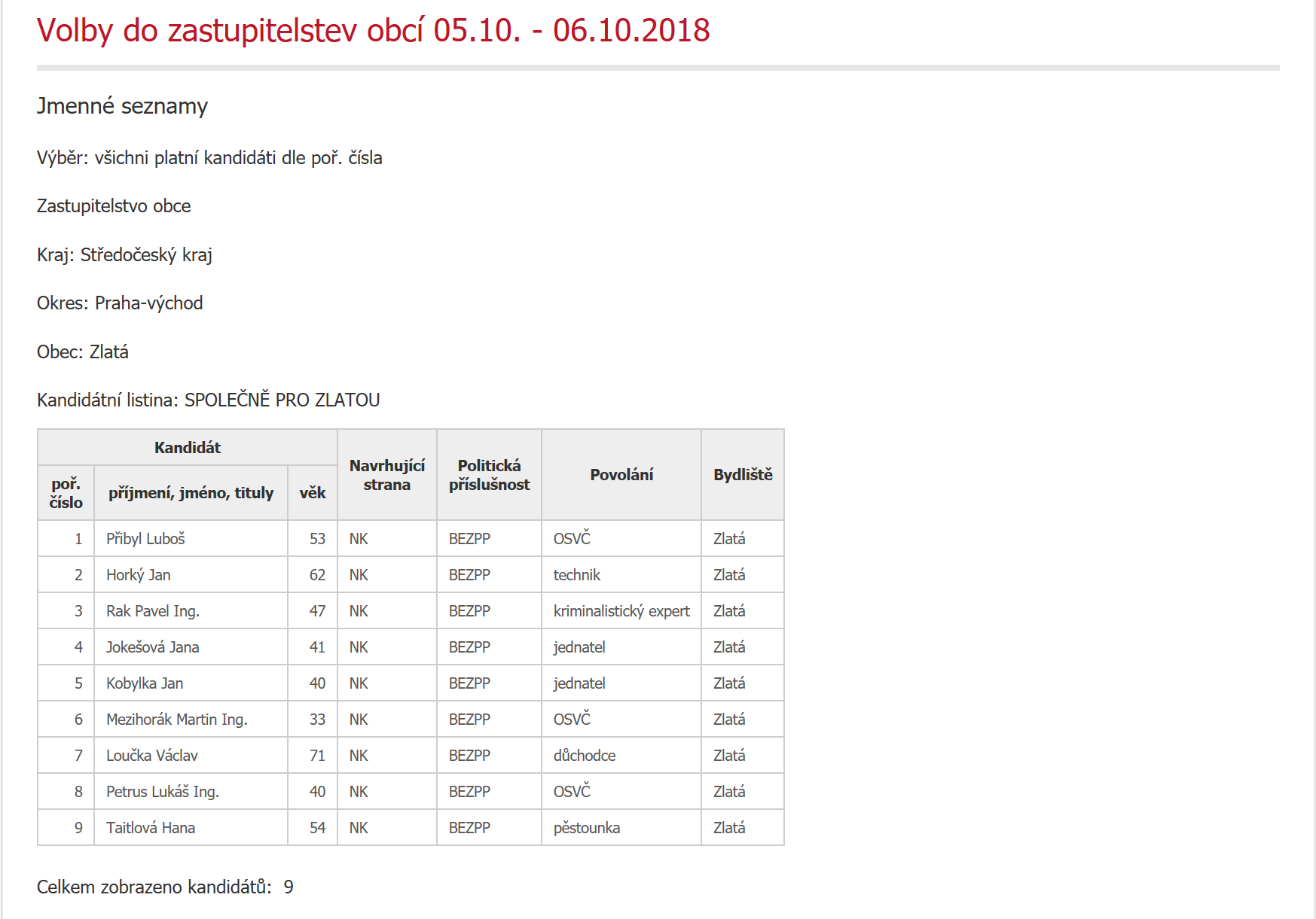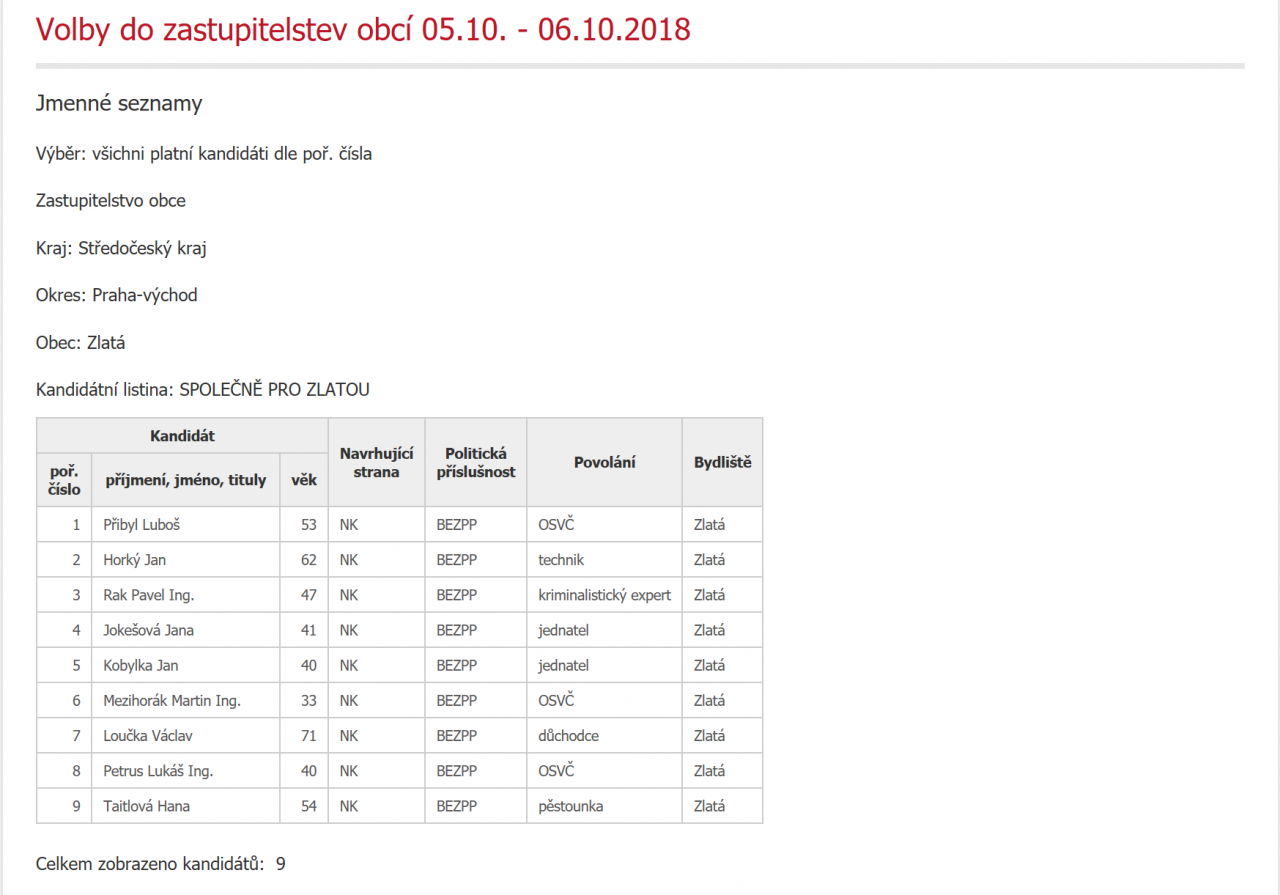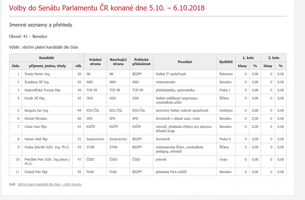 Dovolujeme si Vám zde připojit stručný návod jako volit a přehled jmenných seznamů všech kandidátů.